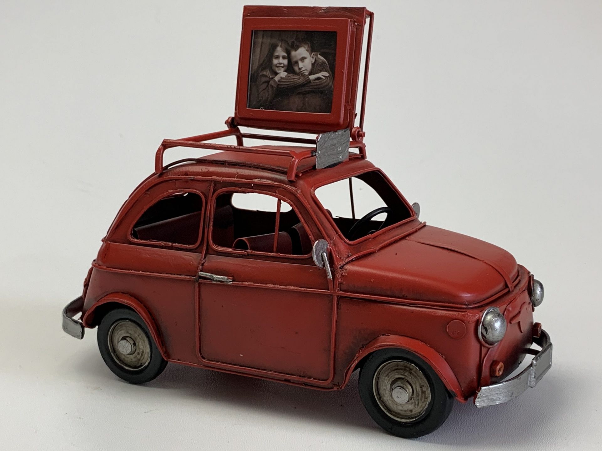 Fiat 500 retro / vintage Look Rood met foto lijstje metaal