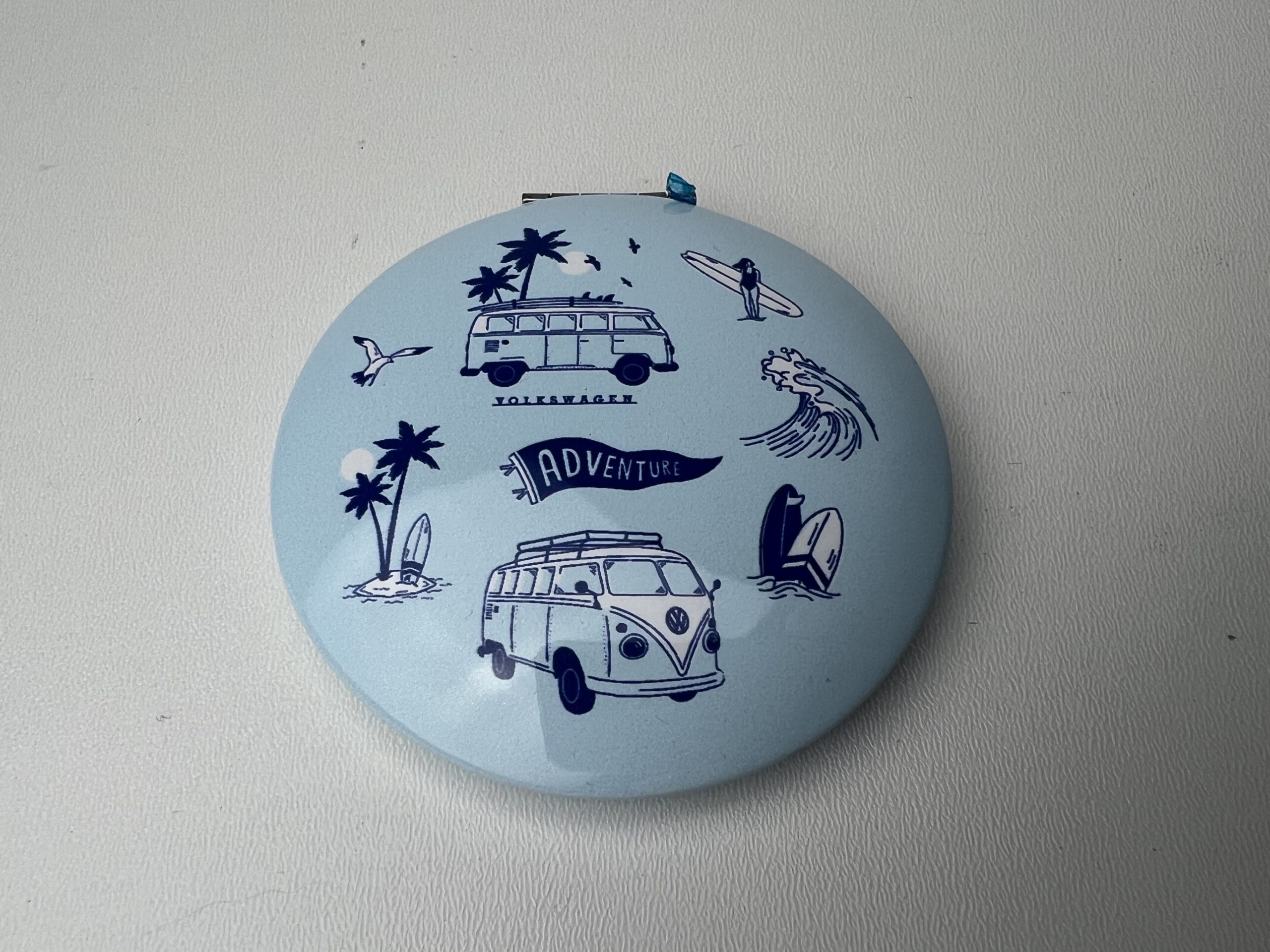 Make Up Spiegeltje Compact Volkswagen Busje VW T1 Explore More & The Waves are Calling – 6,5cm