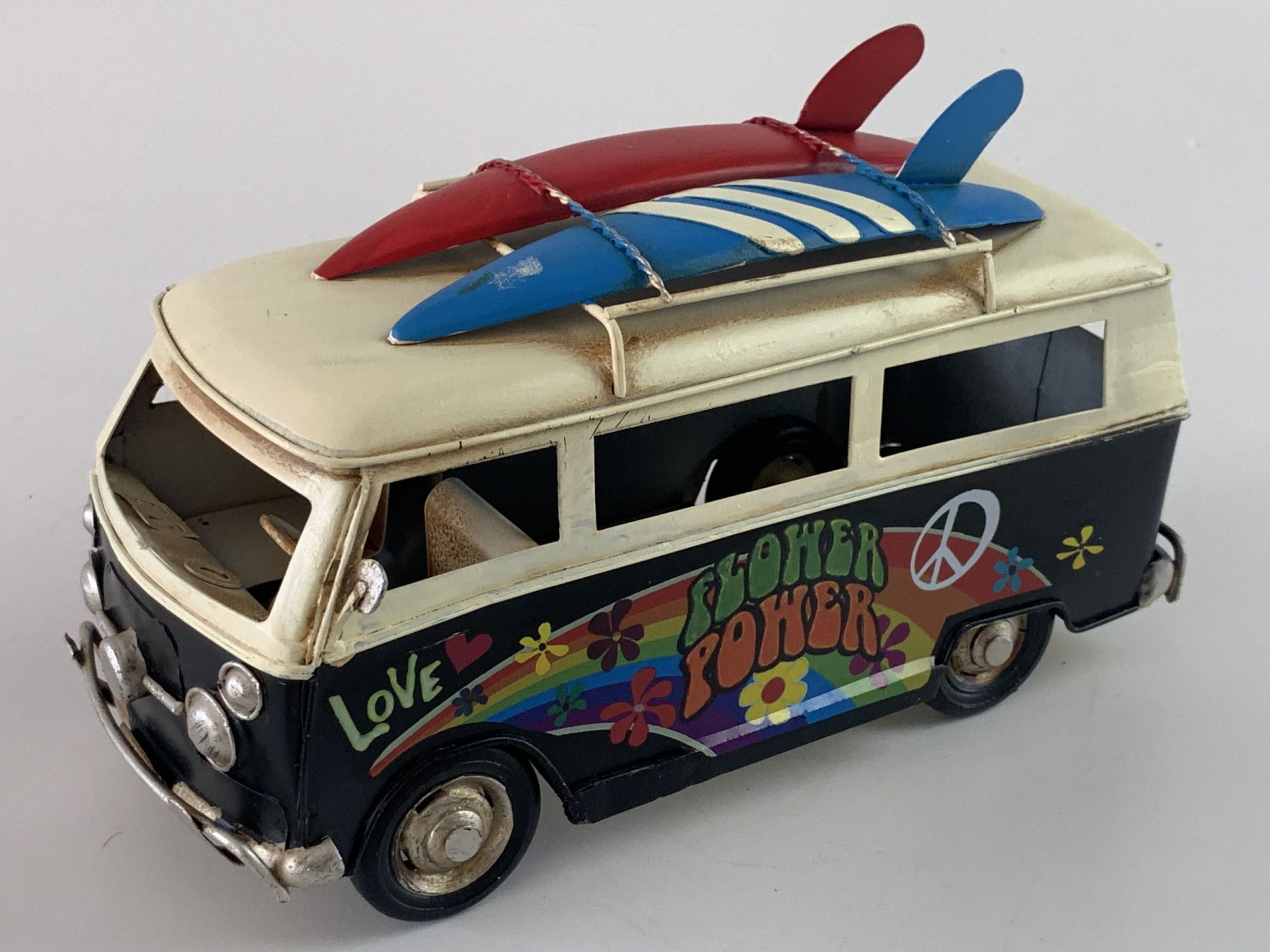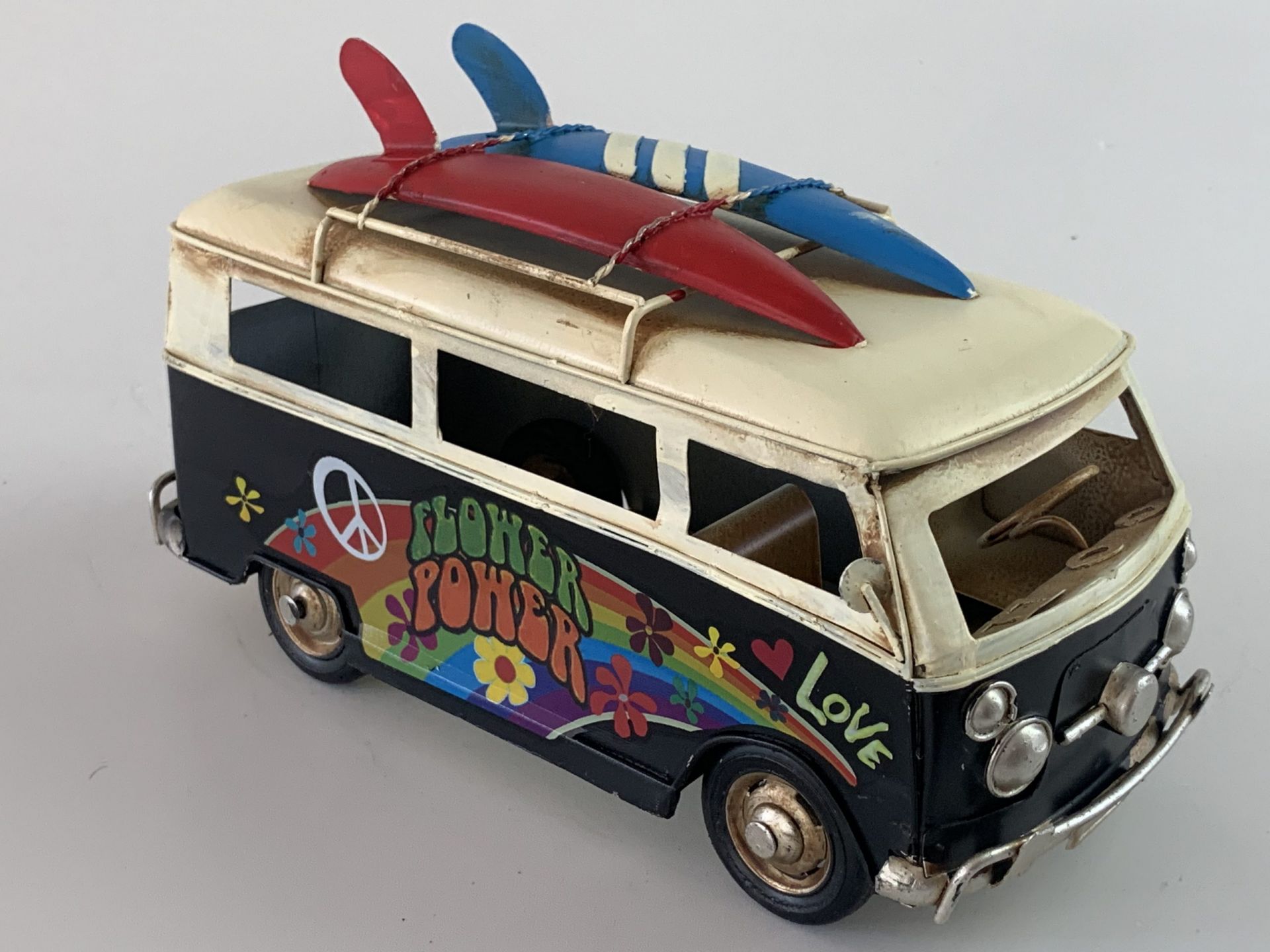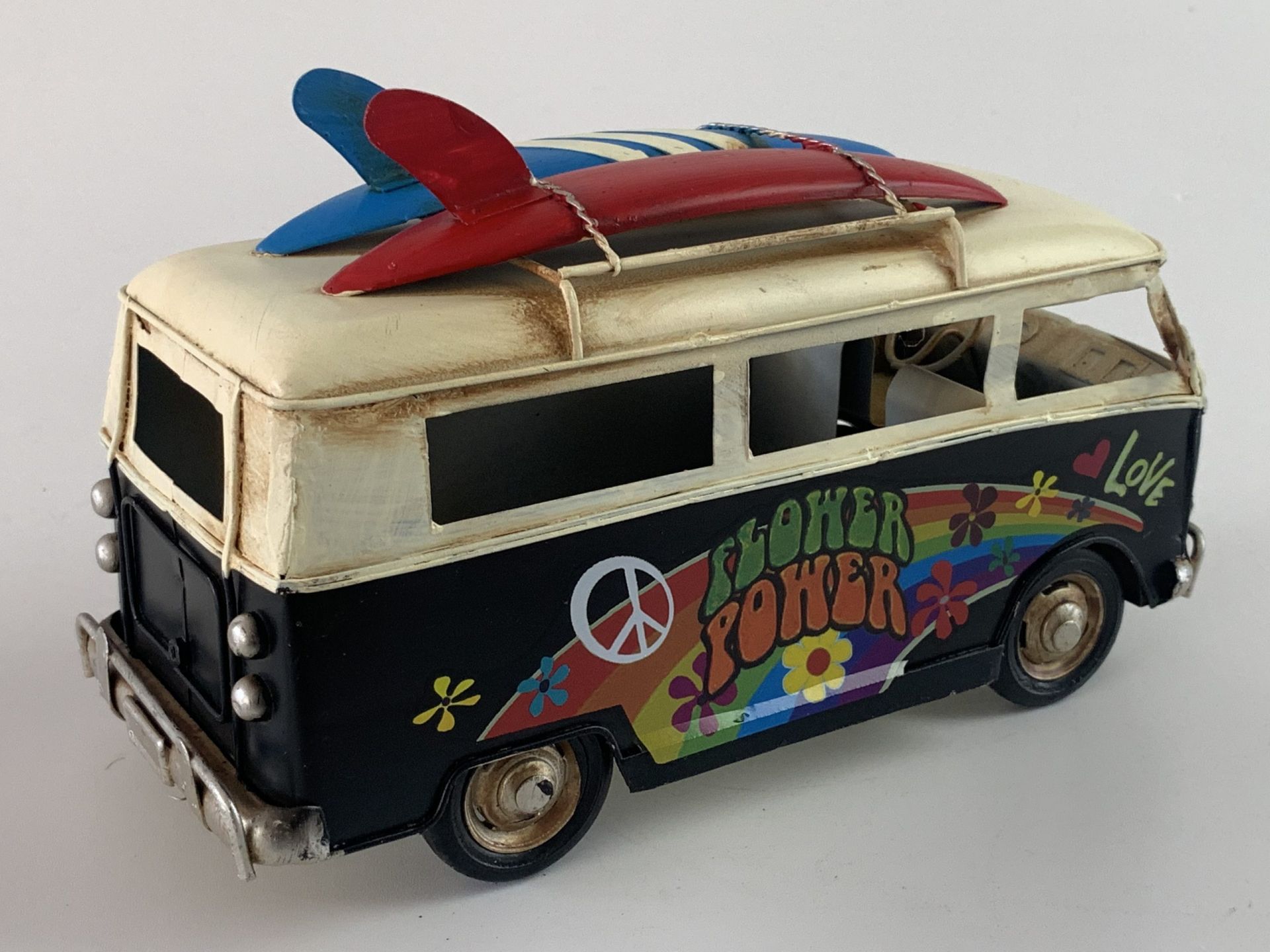 Metalen bus?Hippie style?Flower power Love?Zwart?Afmeting 24 x 15 x 12cm
