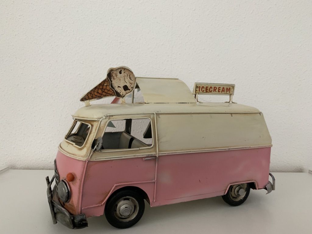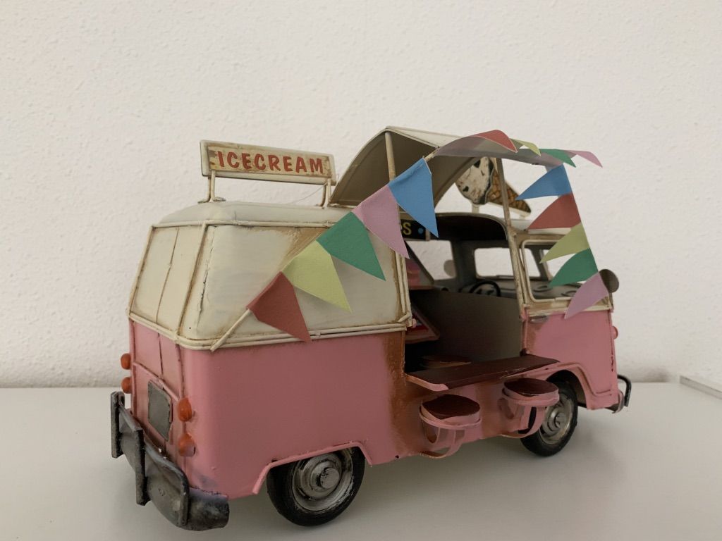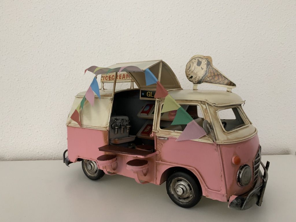 Metalen Bus Ice cream?Roze??28 x 16 x 18 cm