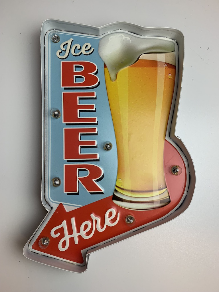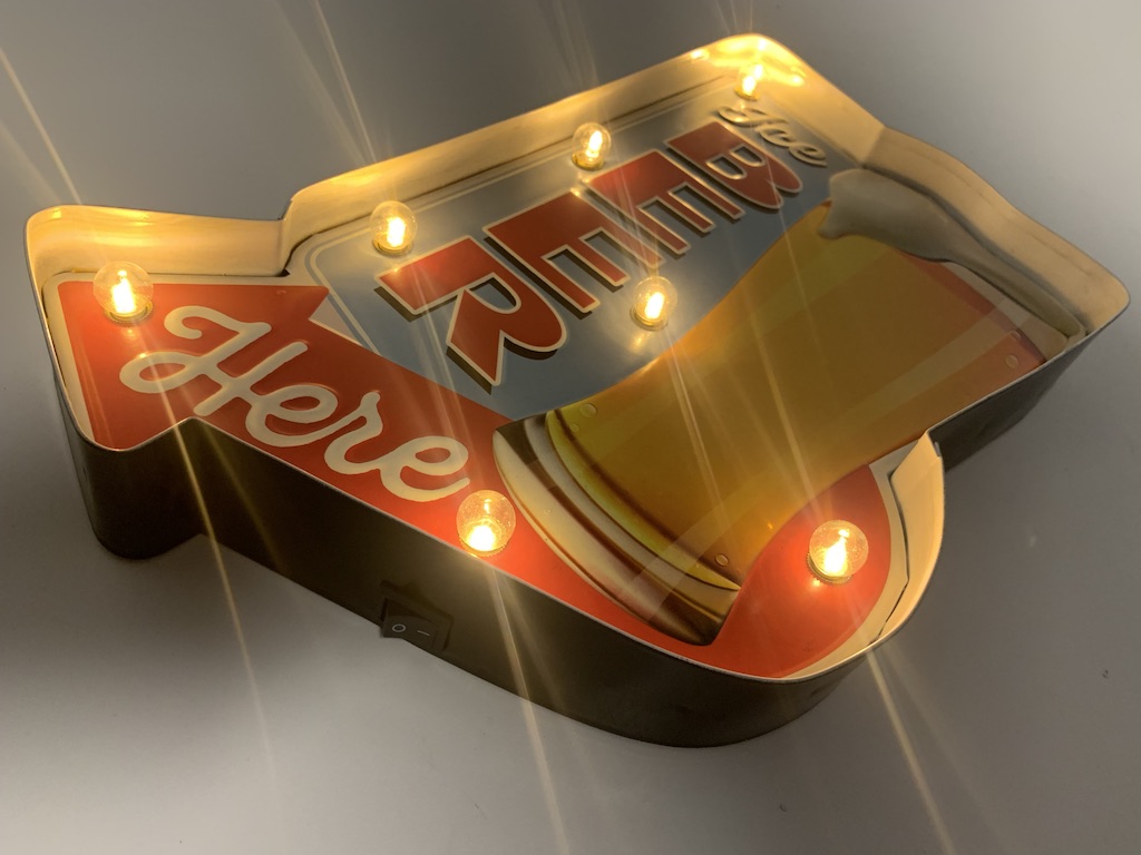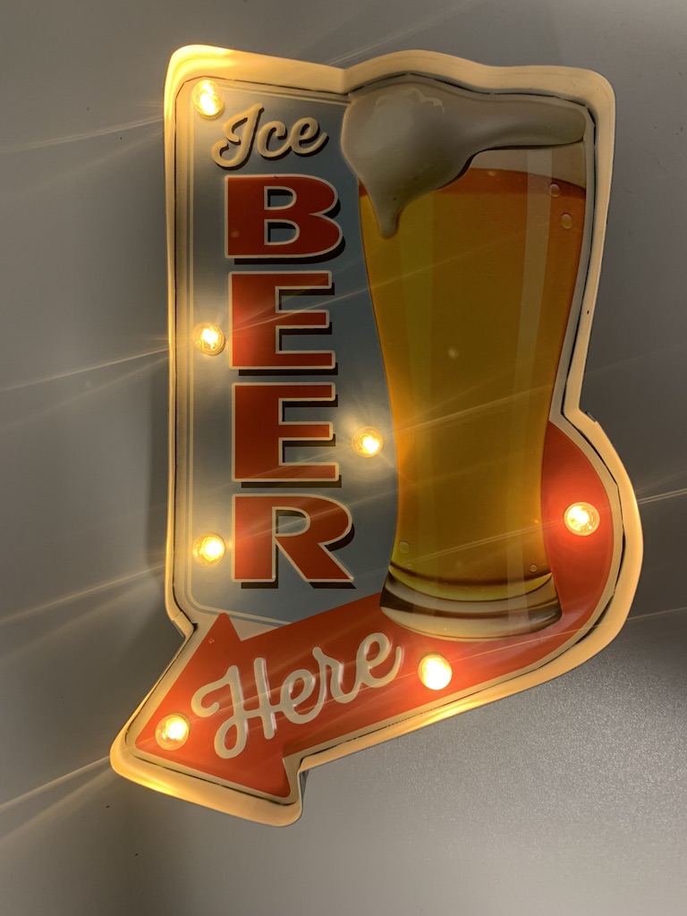 Van dit bord worden wij vrolijk! Dit metalen wandbord in retro/vintage look heeft als extraatje de led verlichting. Zodat het bord in het donker ook nog steeds prominent aanwezig is.