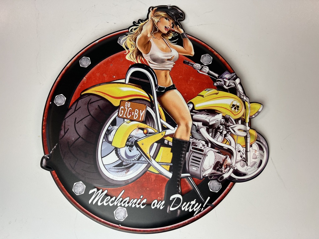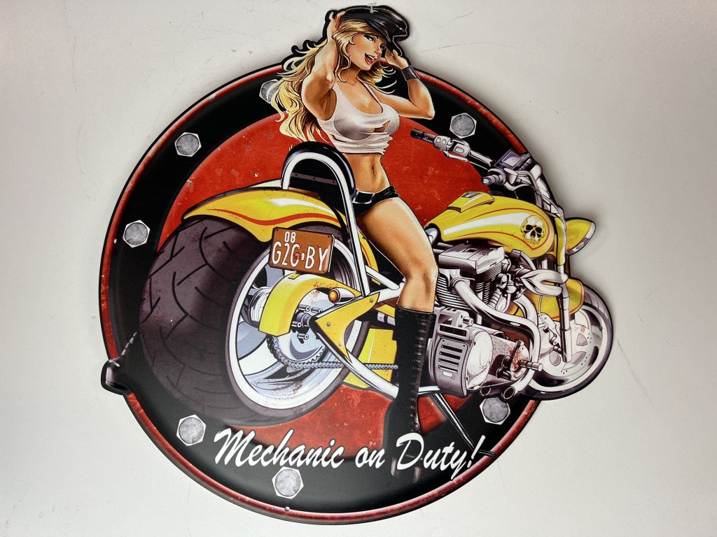 Dit stoere metalen wandbord is perfect om jouw werkplek/mancave/chillplek op te leuken! Hij is redelijk groot van formaat, dus heel veel mooie dame om naar te kijken??