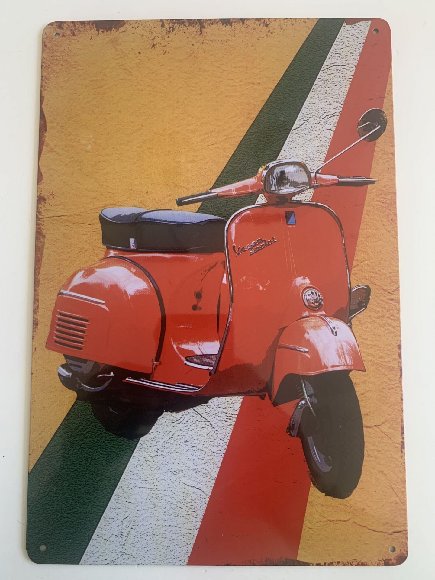 Metalen wandbord Vespa Itali?Afmeting: 20 x 30 cm