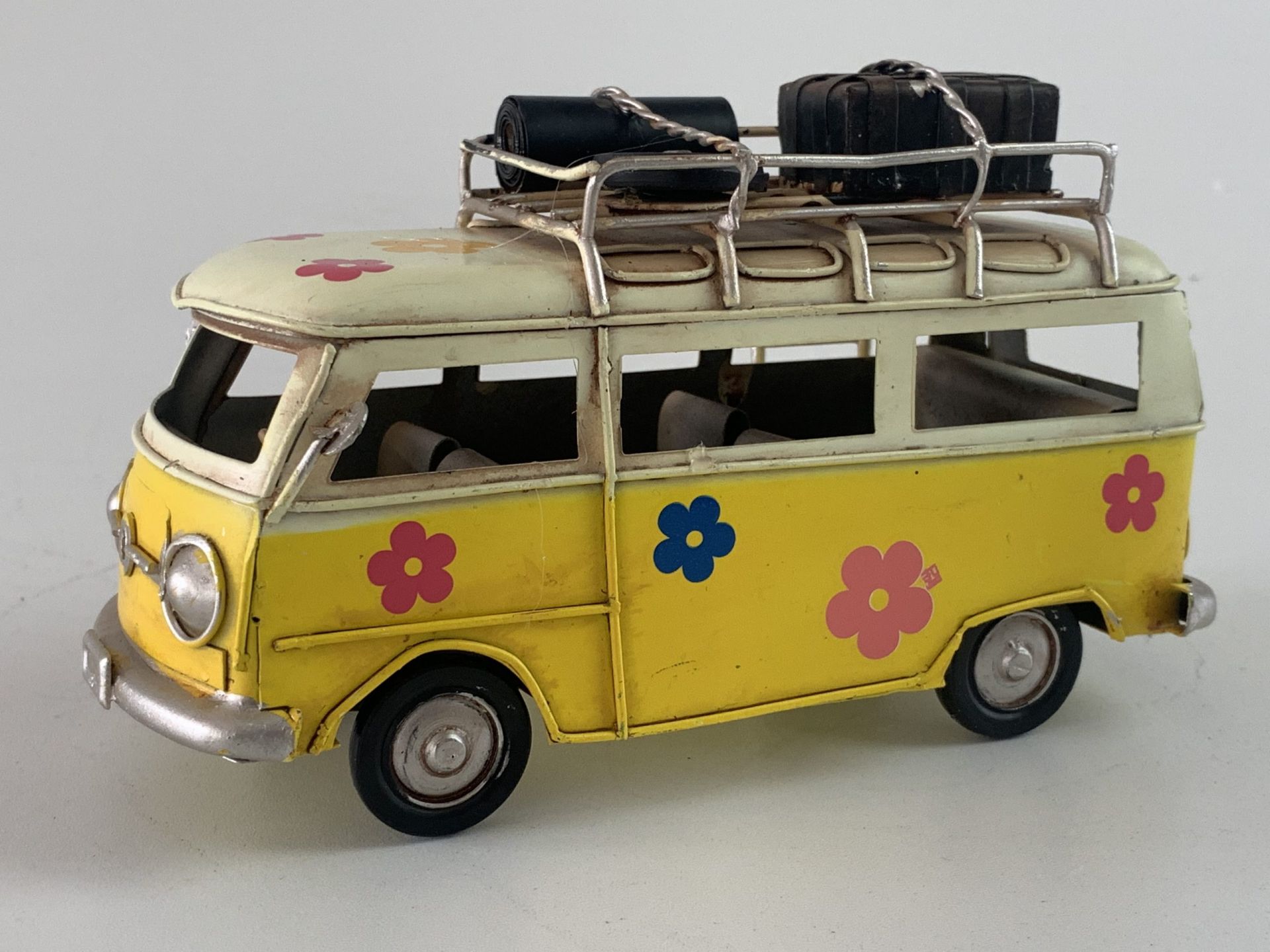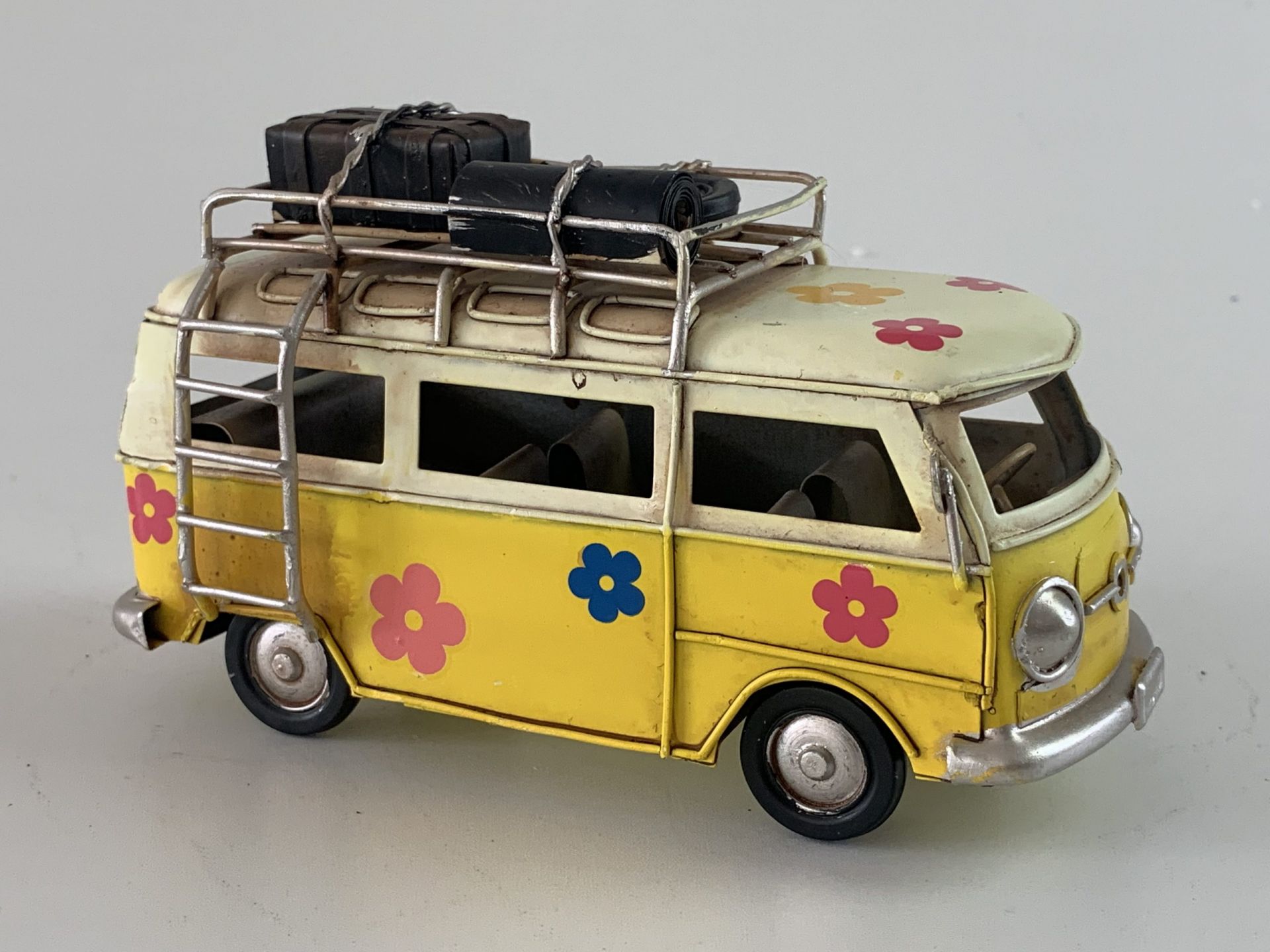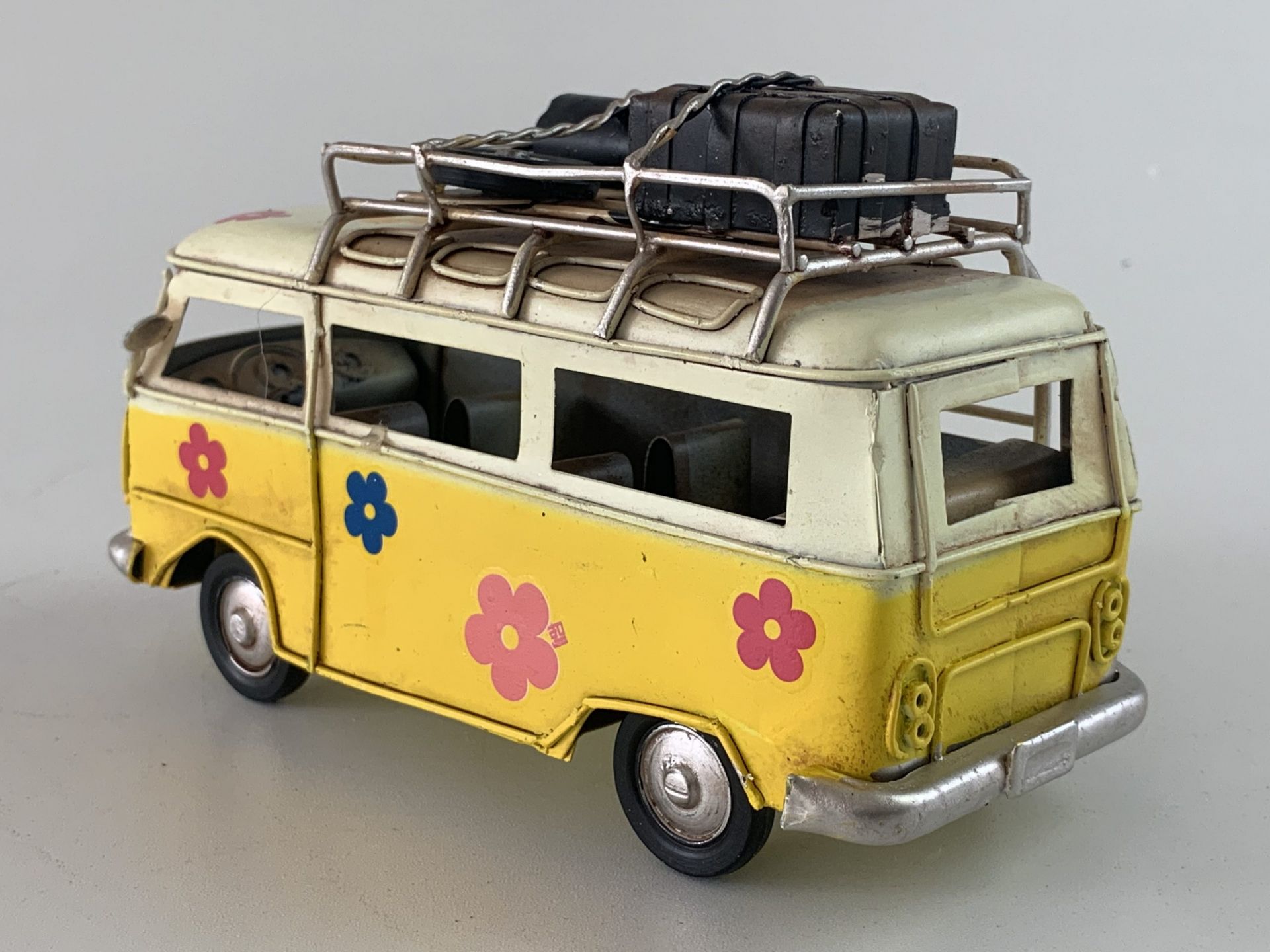 Retro Bus flower powerin het geel?In 4 verschillende kleuren verkrijgbaar??Afmeting: 17 x 7 x 9 cm.
