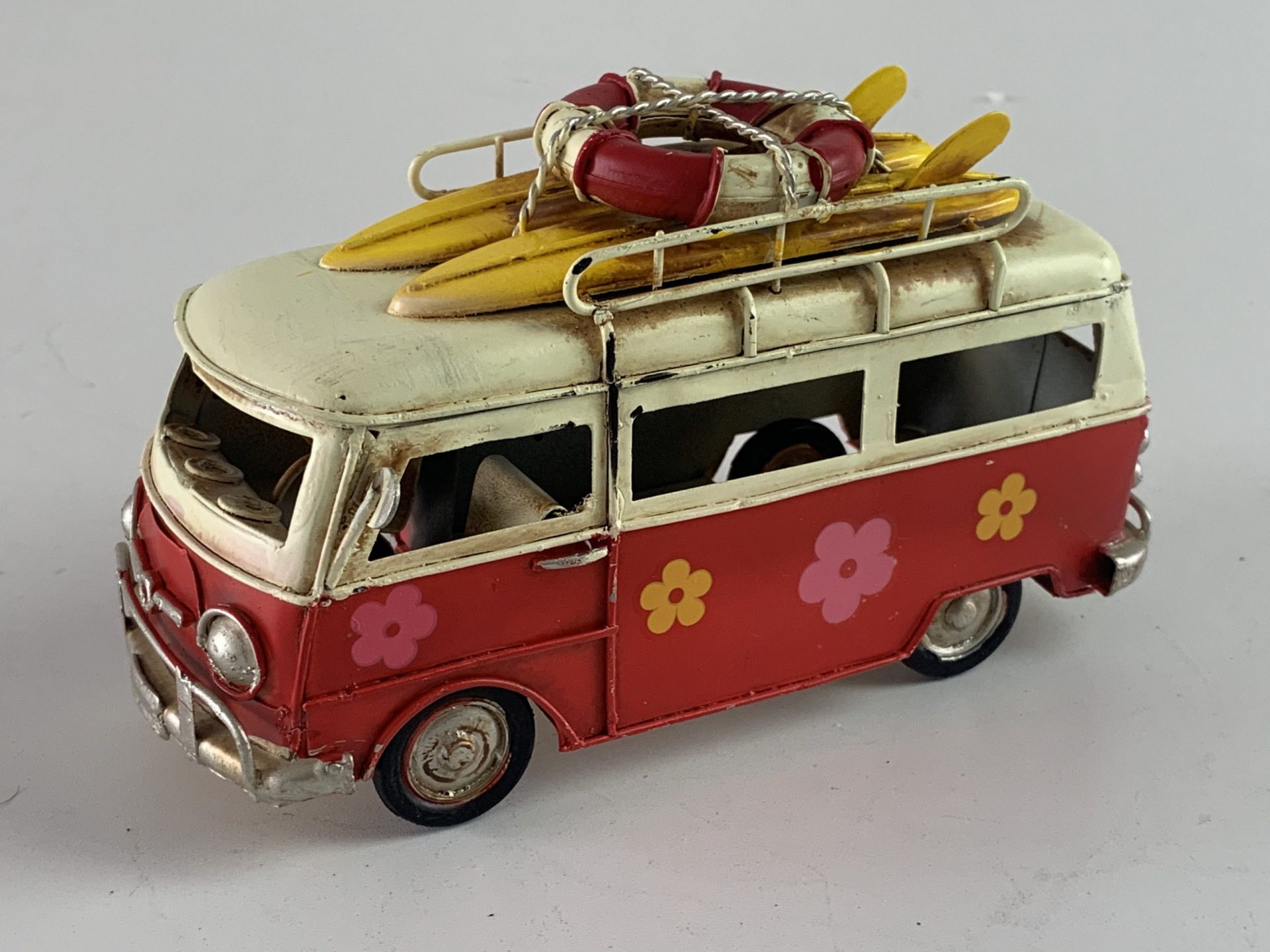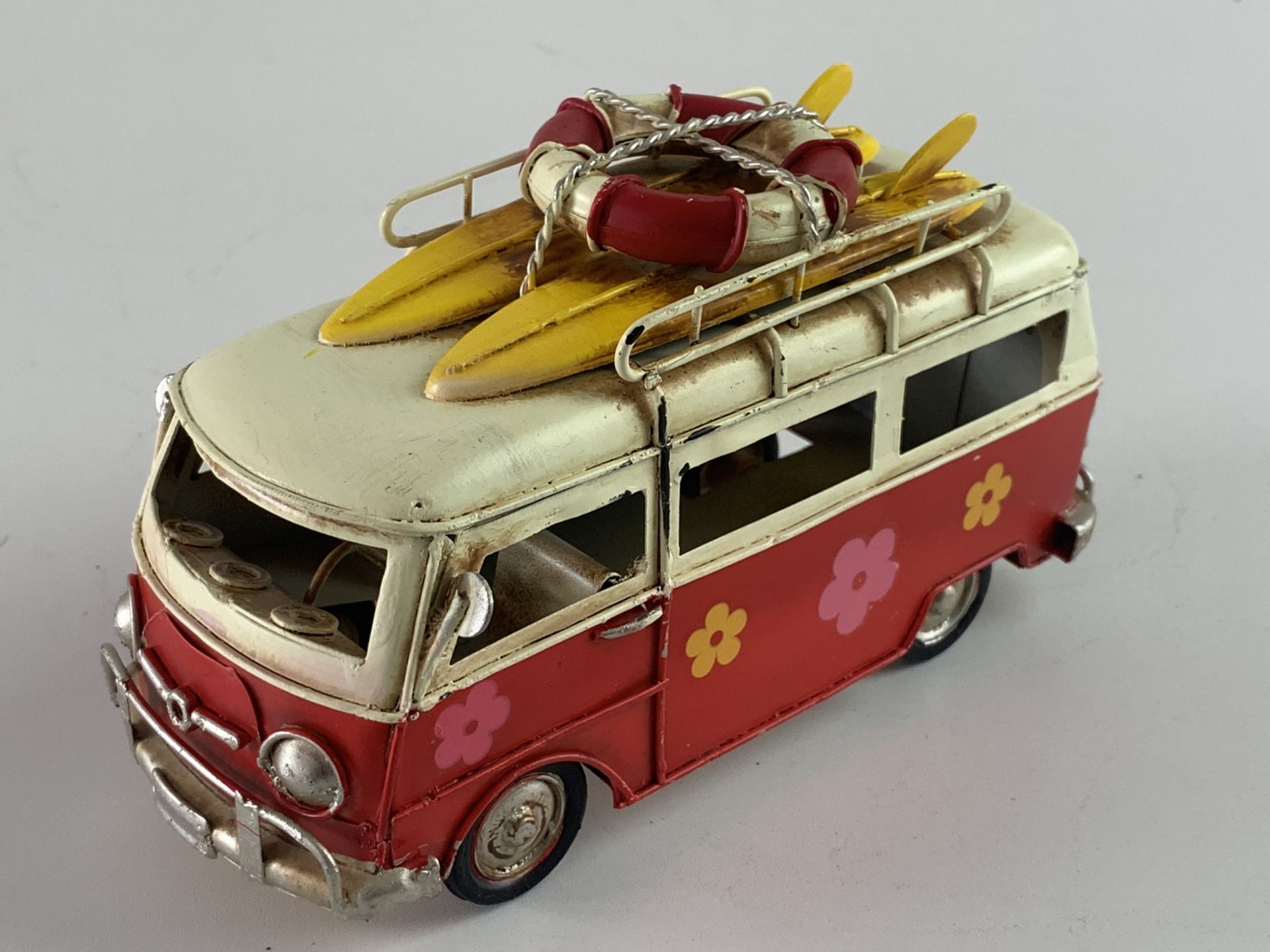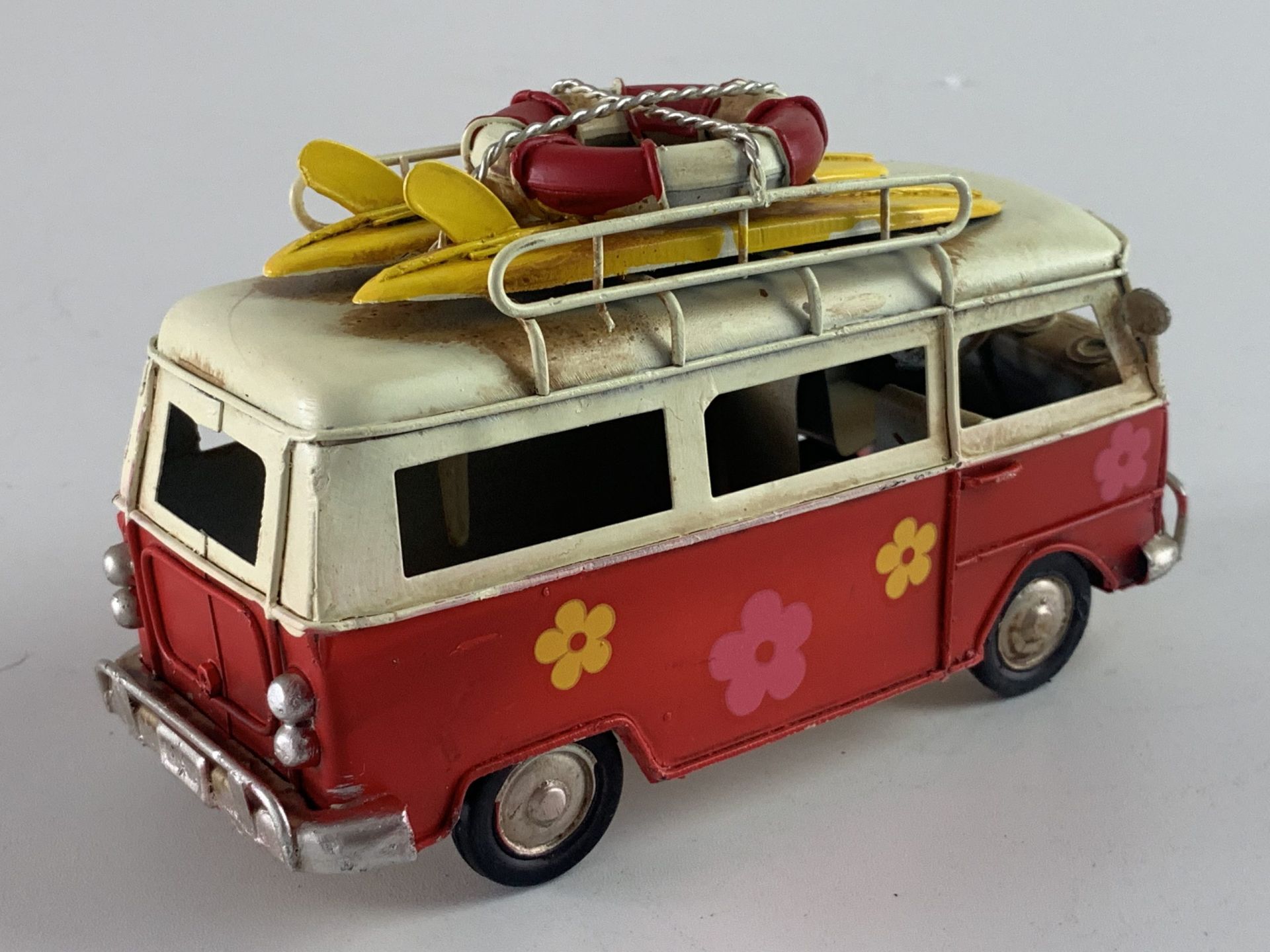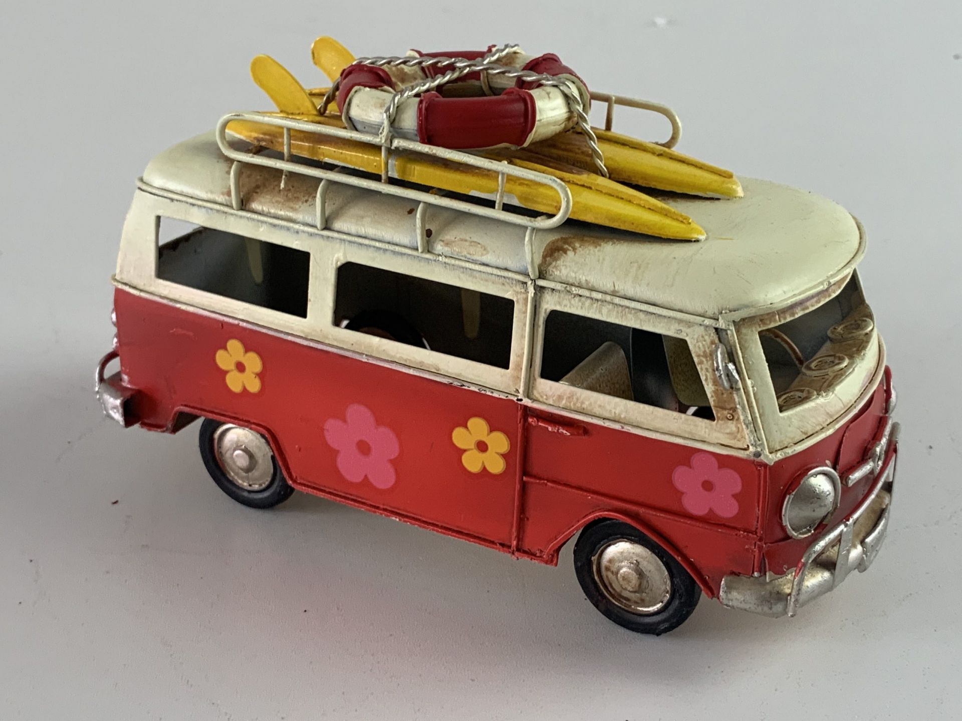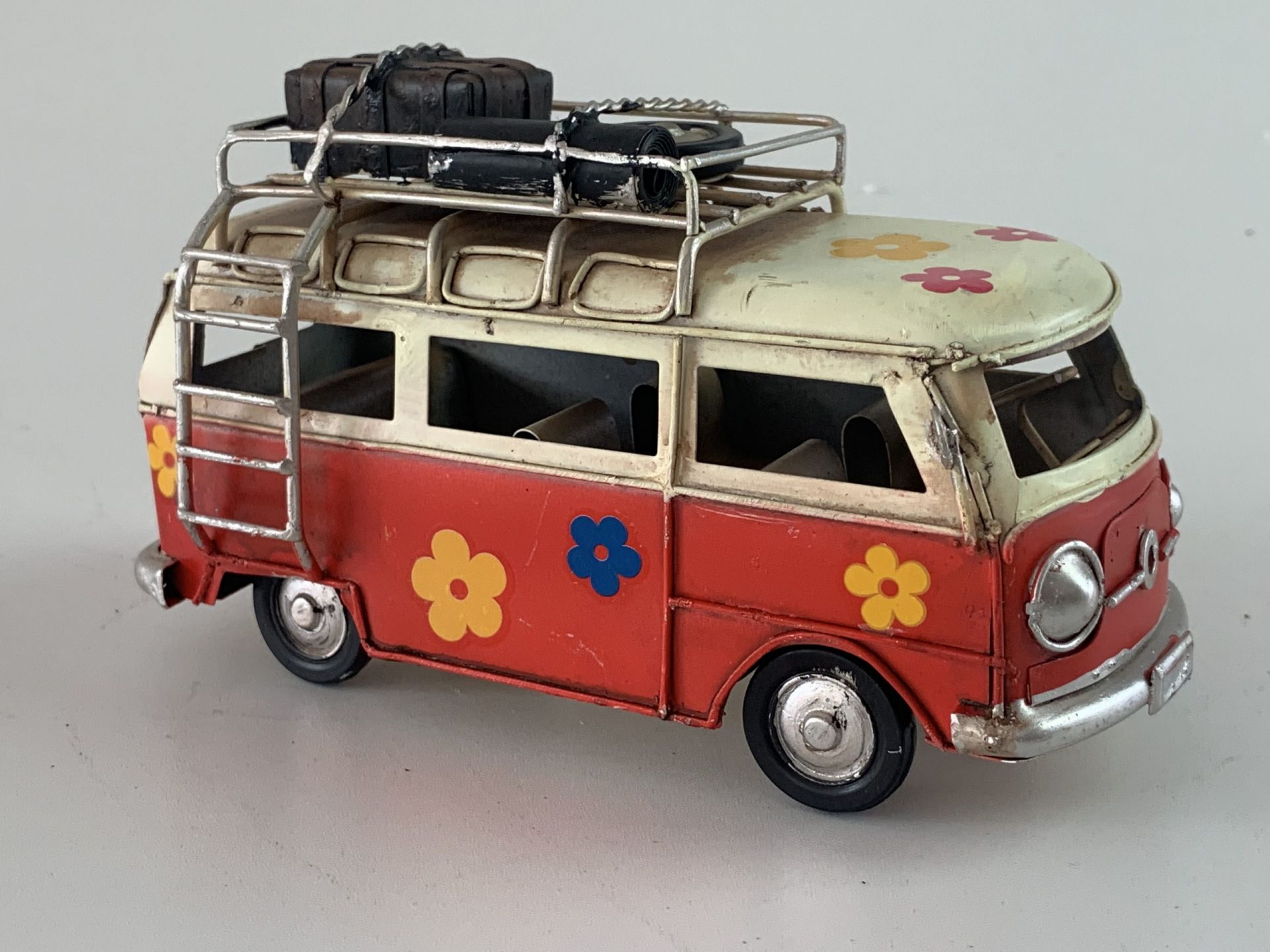 Retro Bus flower power?in het rood?Afmeting: 17 x 7 x 9??In 4 verschillende kleuren