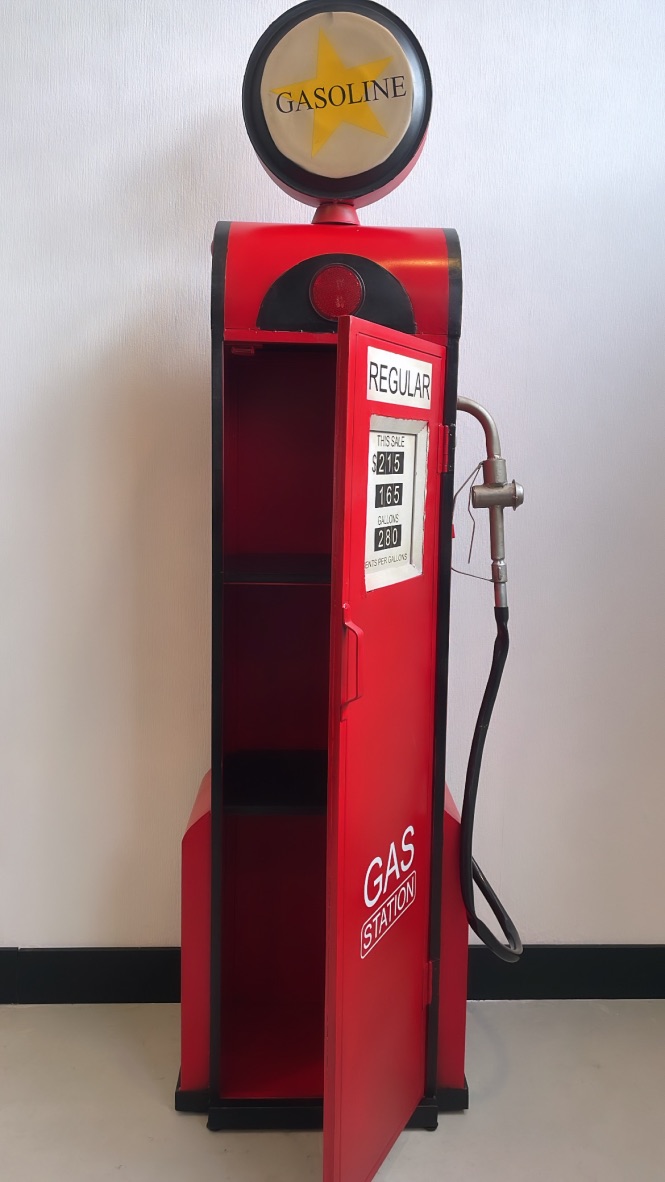 Retro Look Metalen Gas station / Benzinepomp opbergkast 195cm