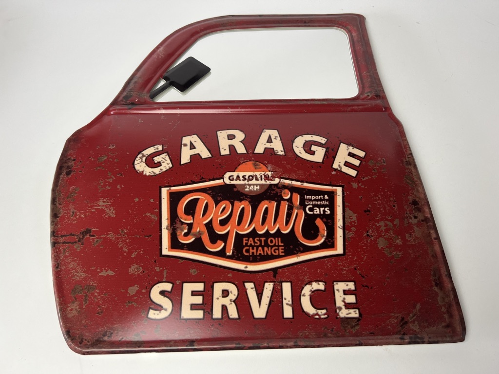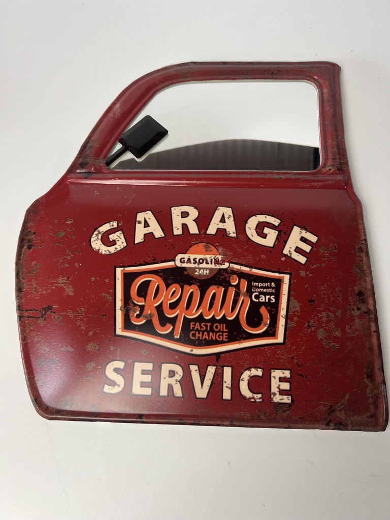 Retro Metalen Muurdecoratie ? Garage service repair Autodeur met Spiegel ? Vintage