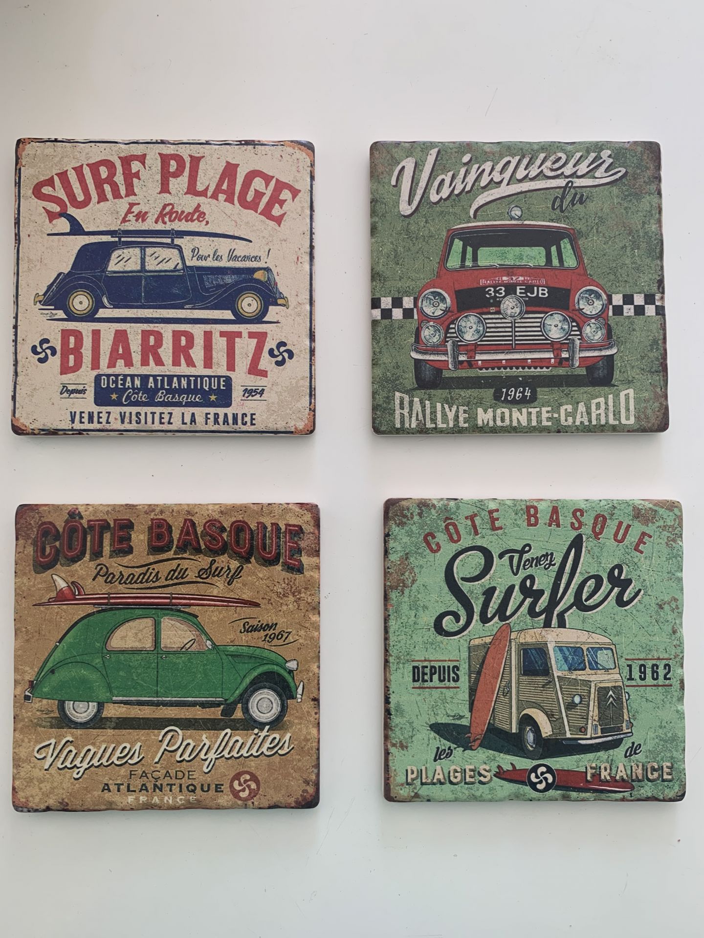 Deze leuke stenen onderzetters zijn zijn weer uniek in zijn soort….Ze zijn te koop per set van 4 met verschillende vintage afbeeldingen.?Prijs per set van 4 stuks 7,95