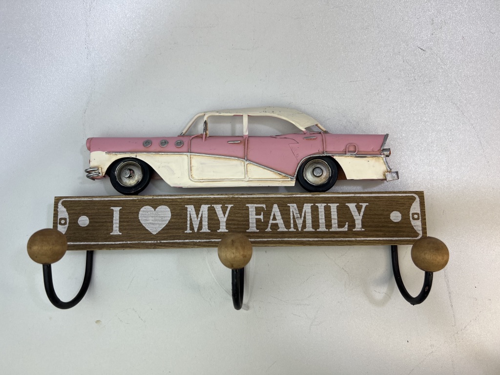 Vintage kapstok/sleutelrek roze Cadillac