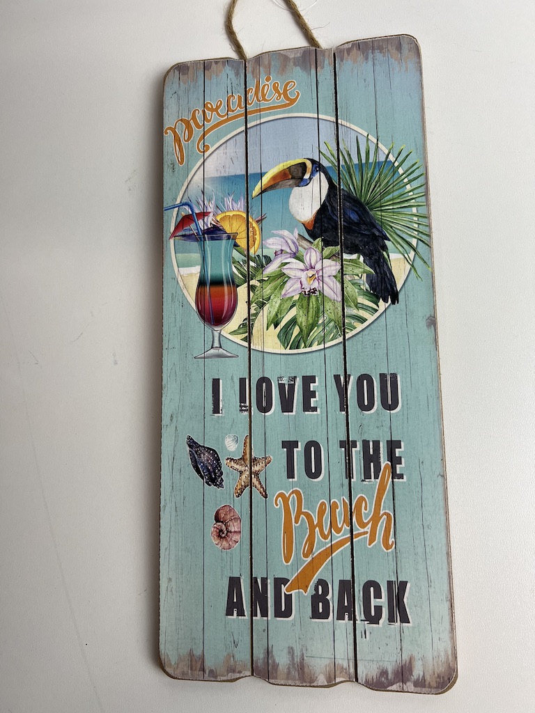 Vrolijk wandbord/tuinbord blauw “Beach”