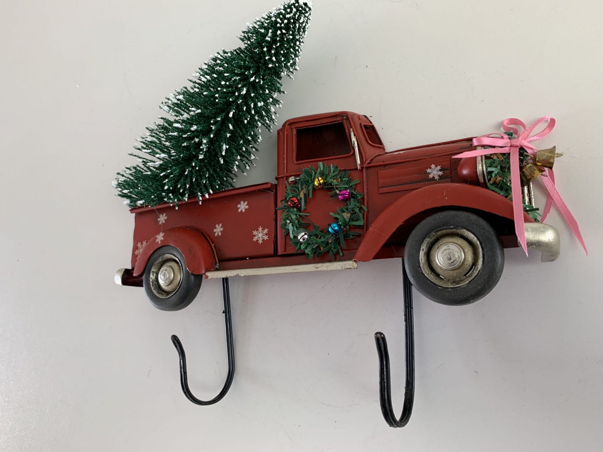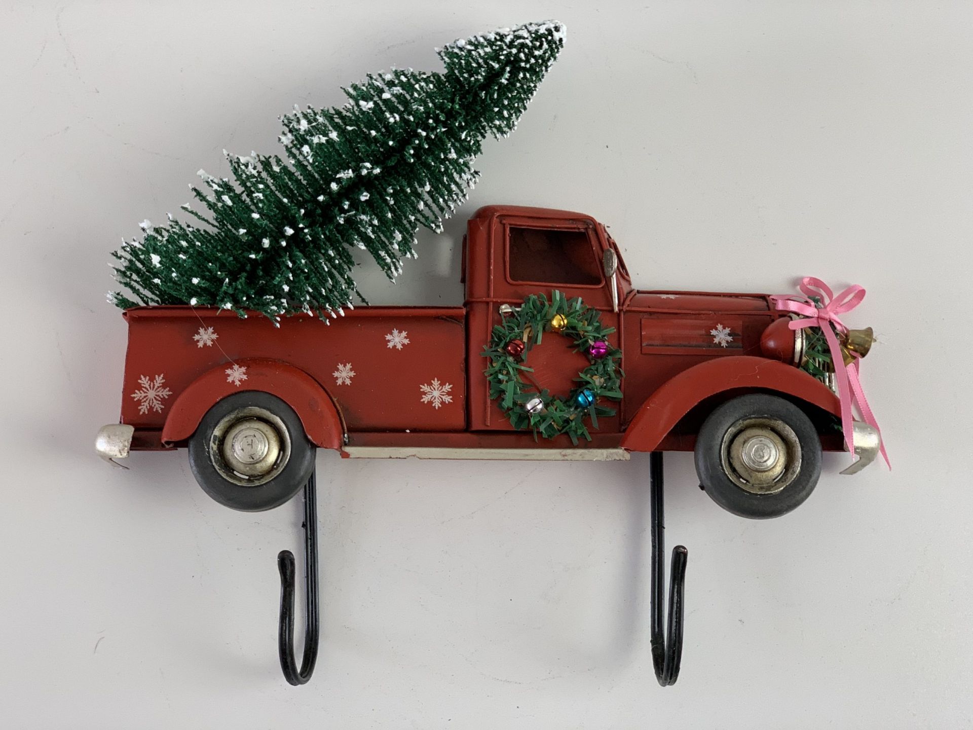 Wandbord kerst look pick up truck met kerstboompje